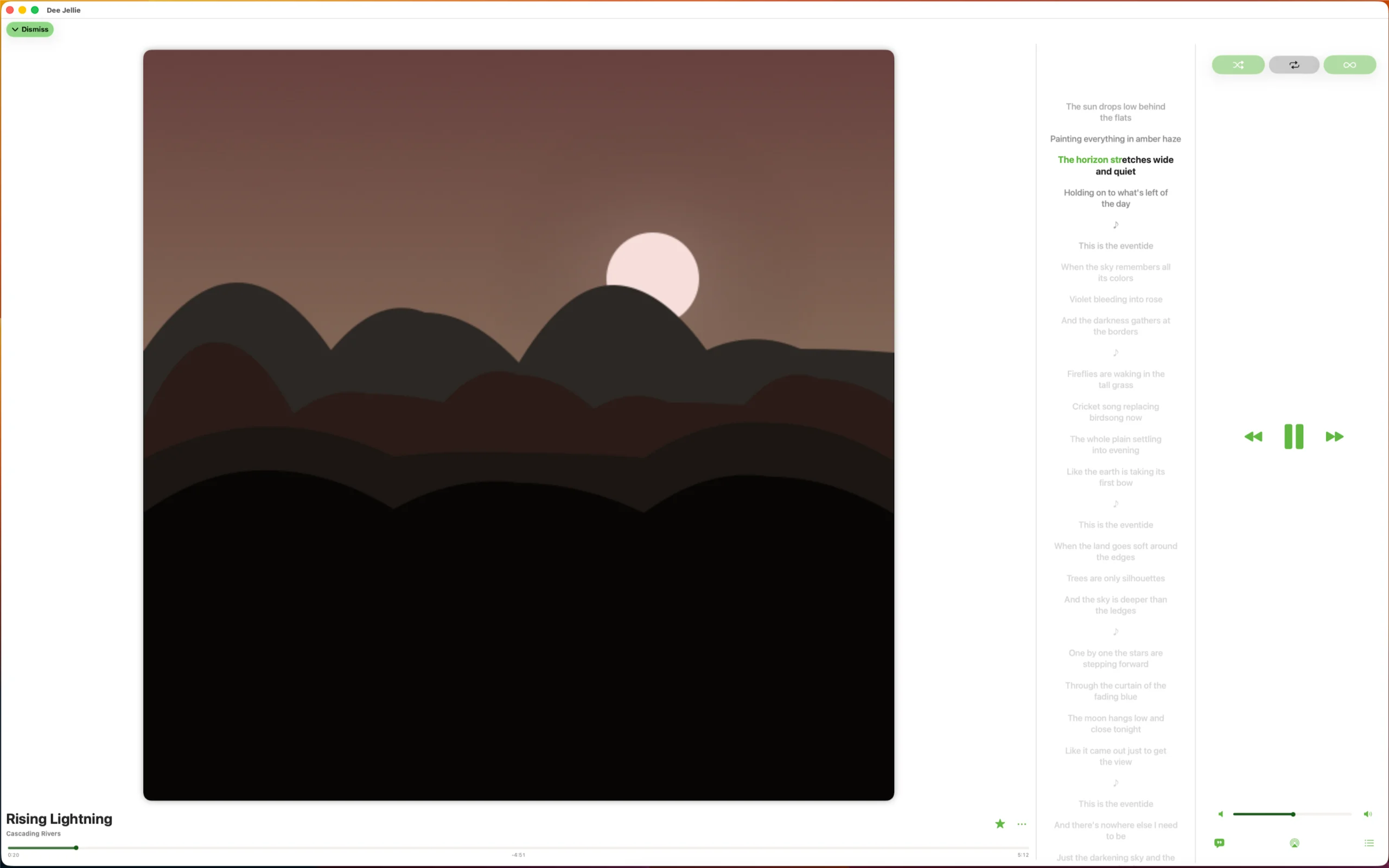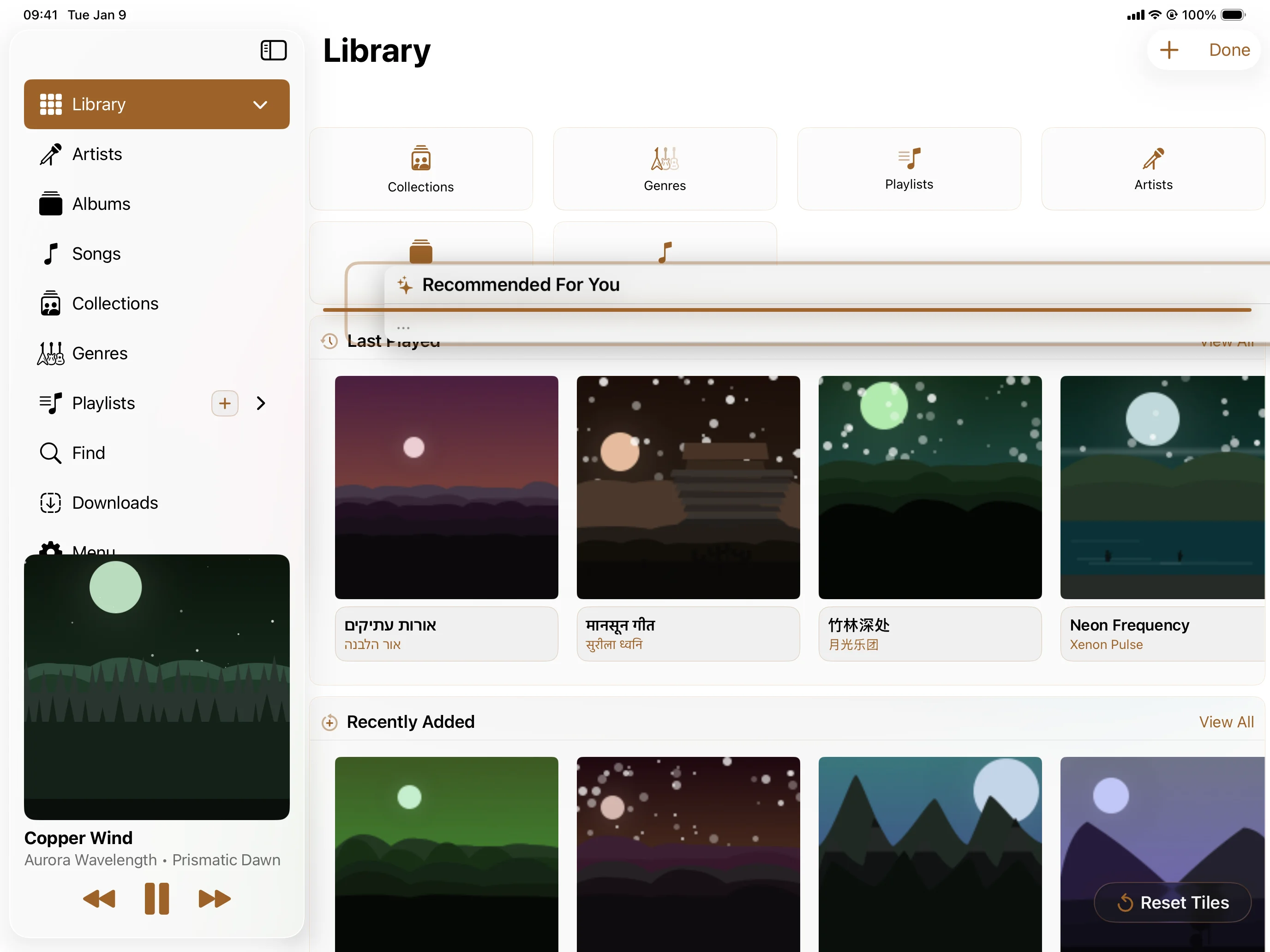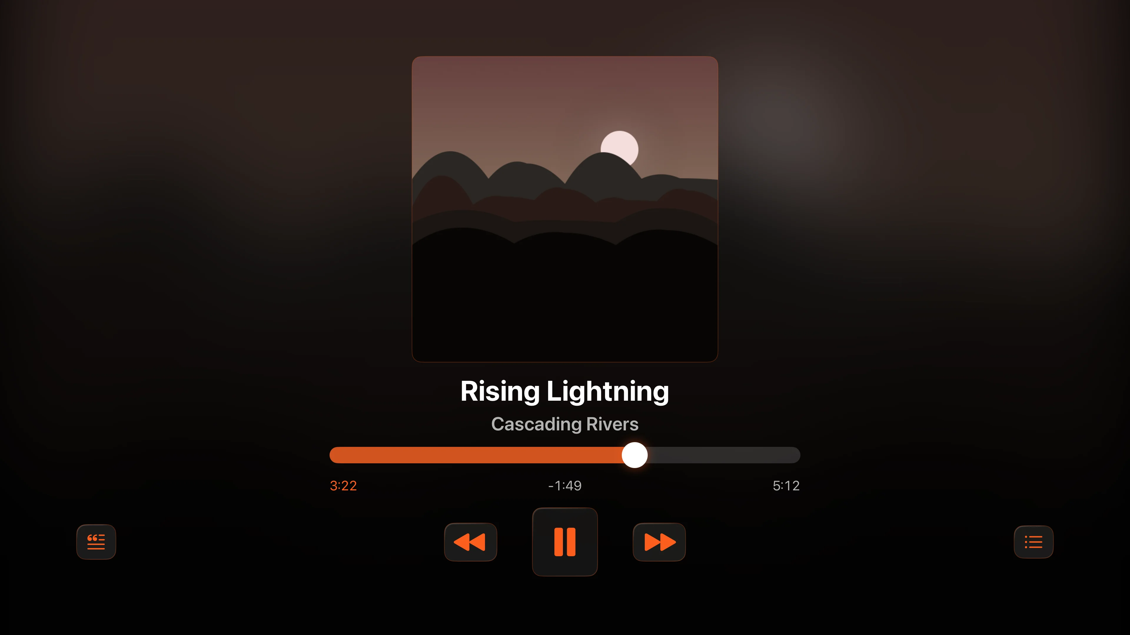 Every detail designed around the listener. Artwork that earns the screen. Controls that land under your thumb. Panels that show up when you need them and fade when you don't.