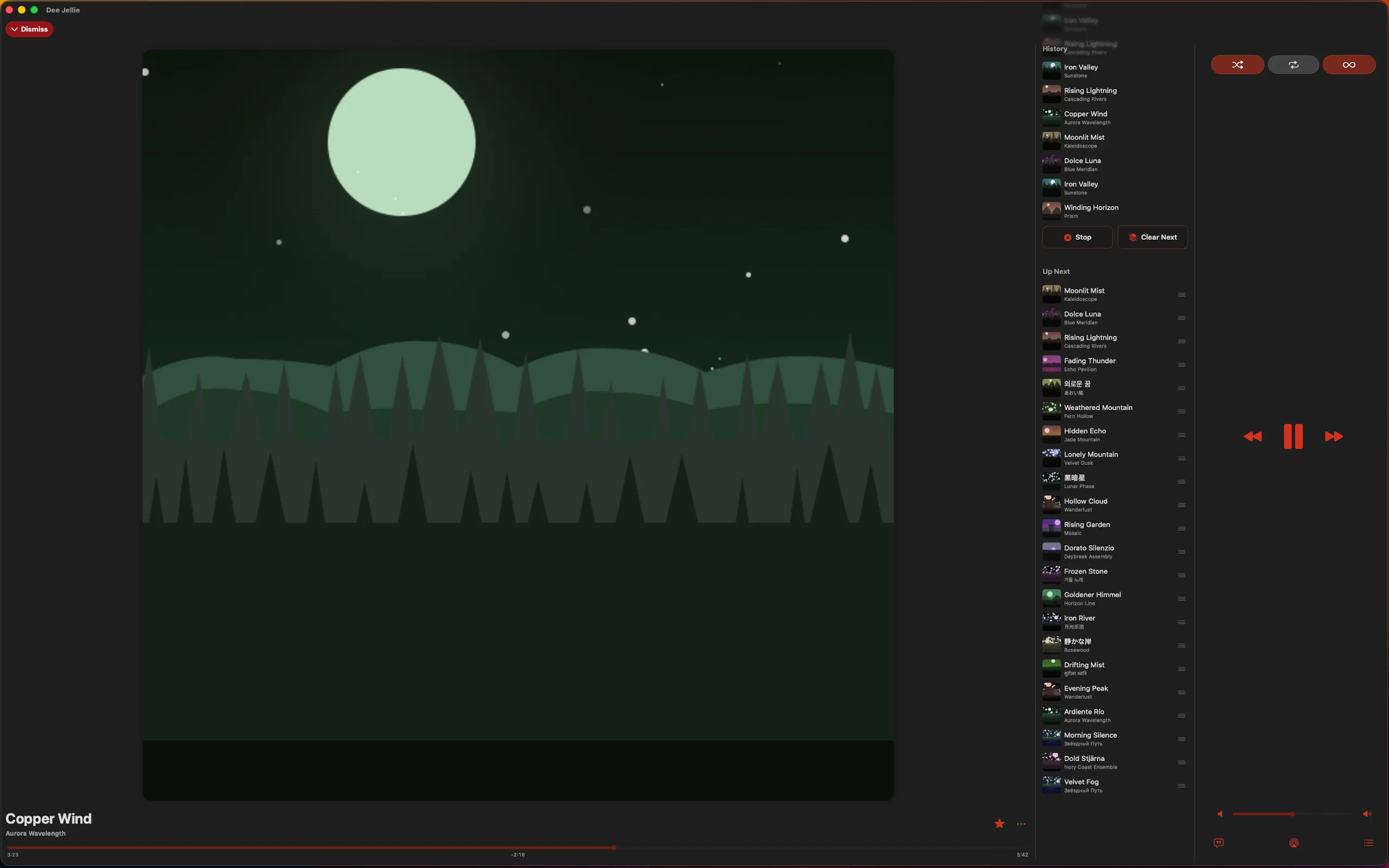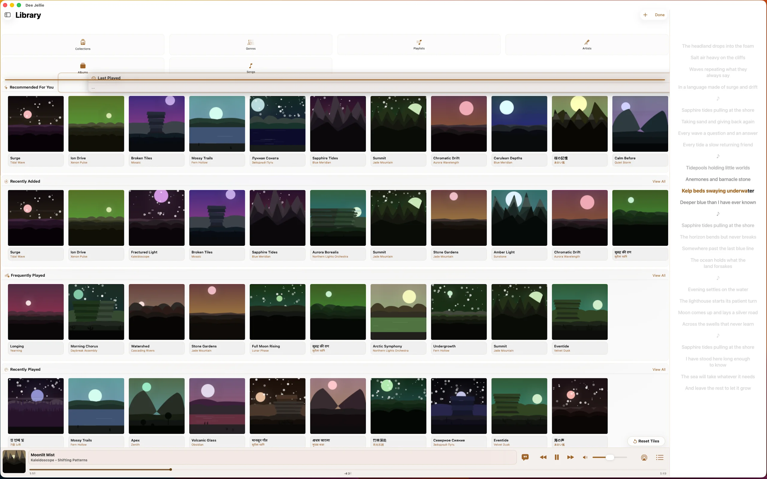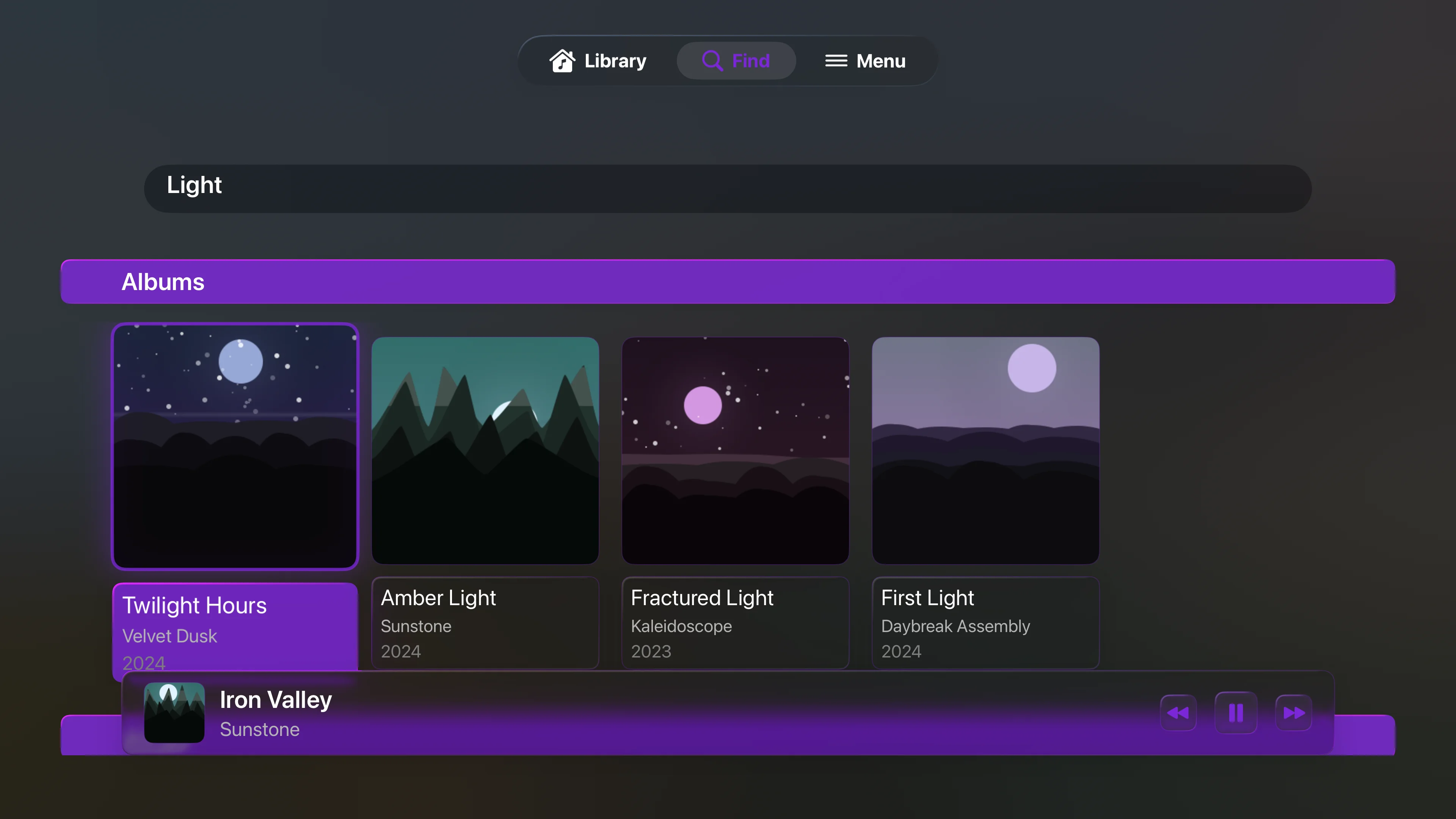 Every detail designed around the listener. Artwork that earns the screen. Controls that land under your thumb. Panels that show up when you need them and fade when you don't.