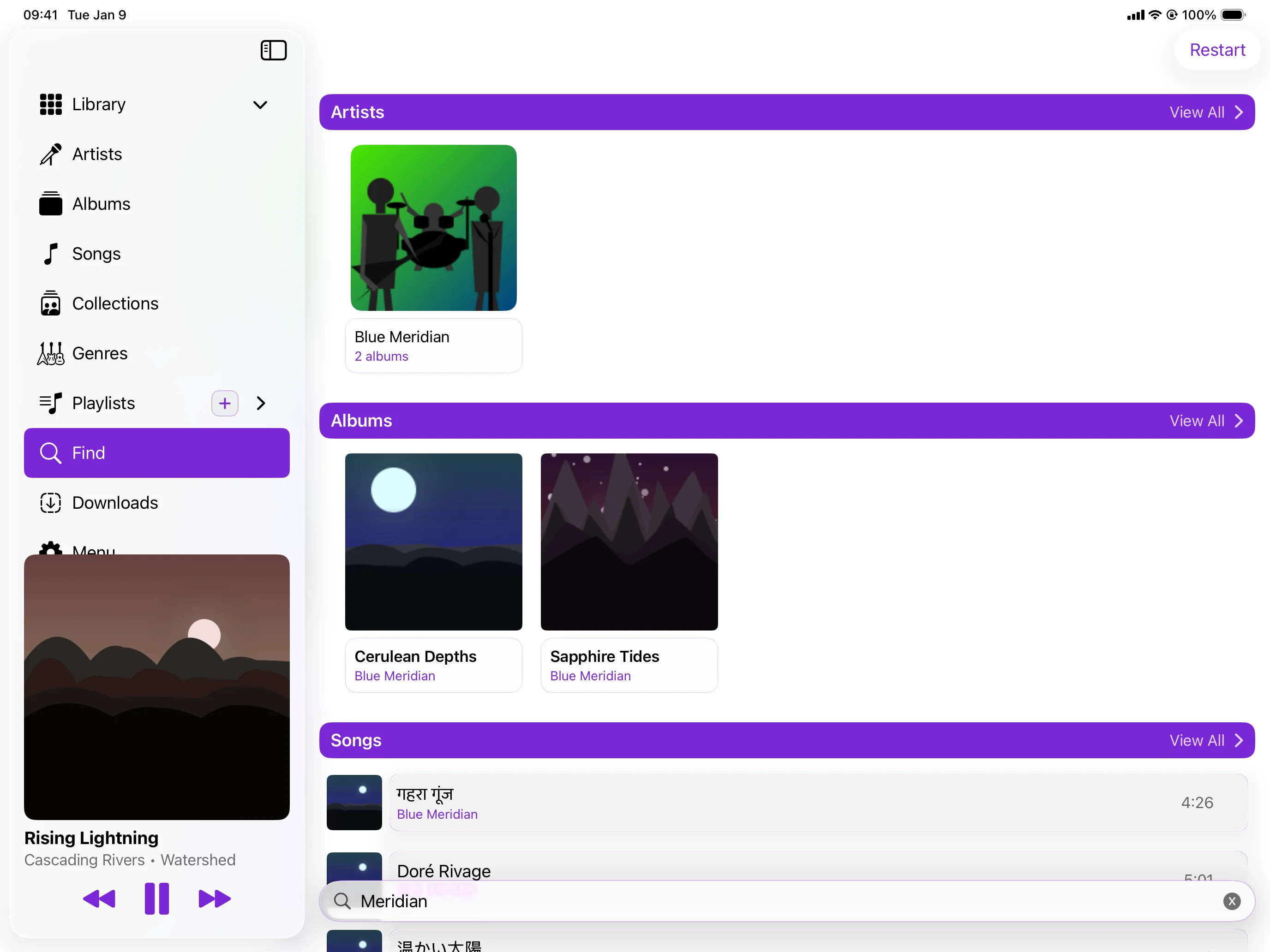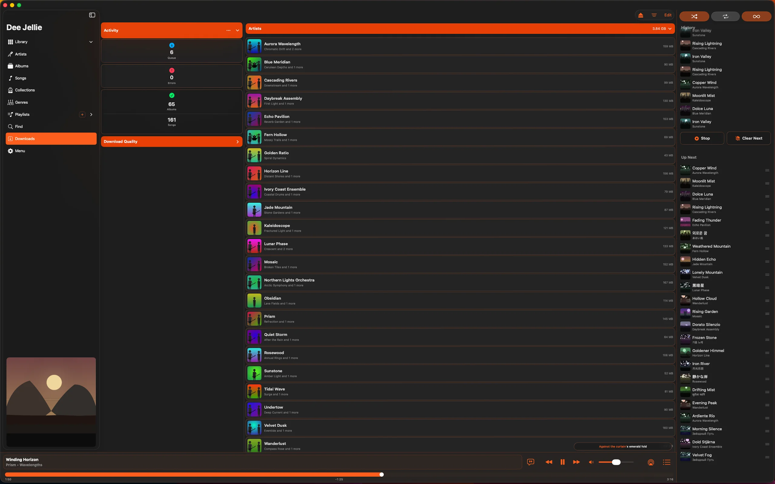 Everything you'd expect from a modern music service, self-hosted on a library you actually own. Support for lossless playback, synced lyrics, CarPlay, Apple Watch streaming, and Internet radio. Plus a 16-band EQ, multi-server queues, real offline downloads, and zero data collection.