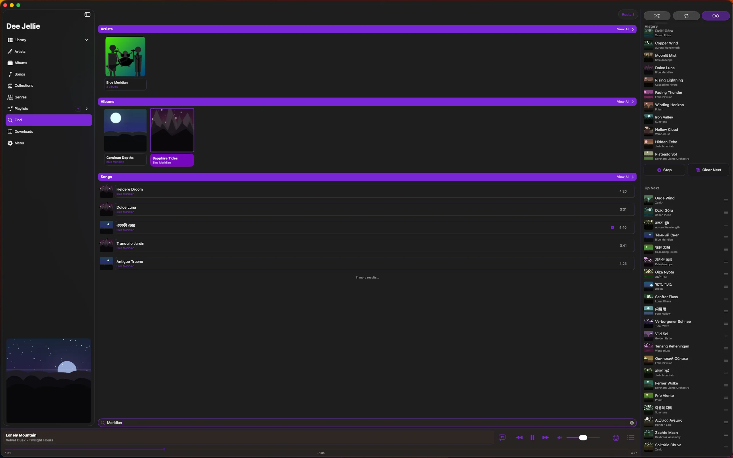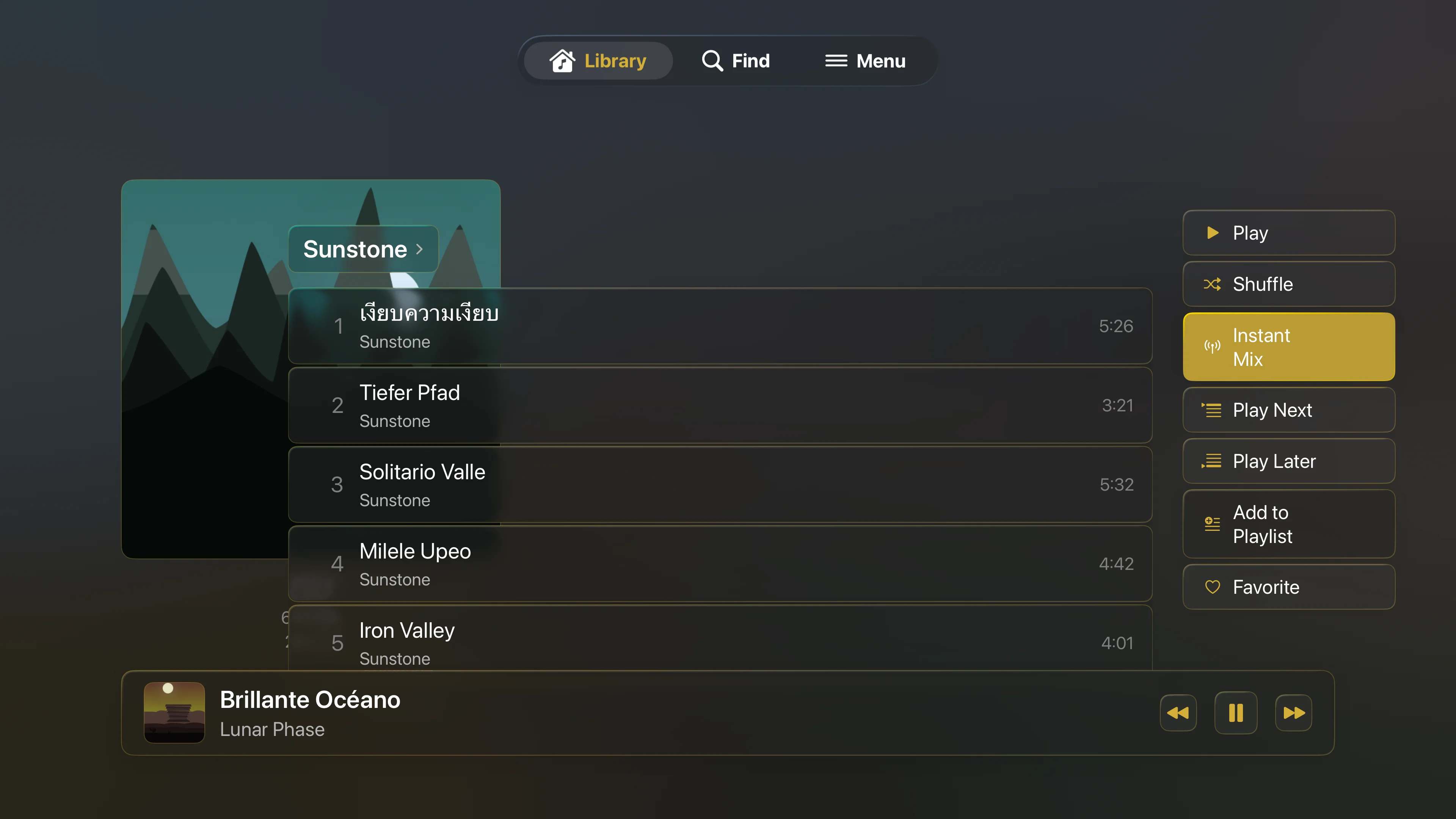 Tap any song, album, or artist for an instant queue of similar tracks from your own library. Great when you know the vibe but not the next song.