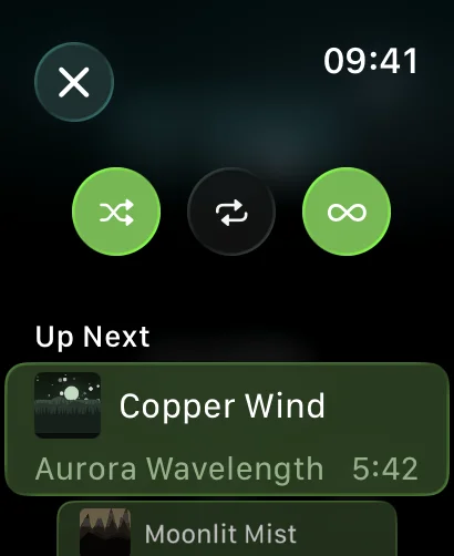 A player that sweats the small stuff. Crossfade between sets, a silent gap between tracks when you want breathing room, hapticsΒΉ under the kick, volume you trust across every source, and a sleep timer that fades the music out instead of cutting it off.